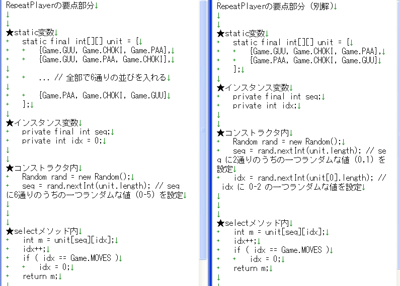 グー・チョキ・パーを決まった順番 (6通りのうちの一つ。生成時にどれか一つランダムに決定する) で出すのを繰り返すプレーヤクラス RepeatPlayer
